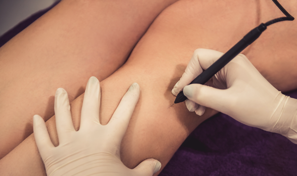 Three vertical, evenly spaced, black circles, leads to menu navigation.